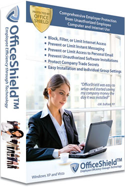 We have created OfficeShield to be the most comprehensive employer protection from unauthorized employee computer and Internet use available on the market today. Improved security is only half of the OfficeShield benefit. When your employees are not using company time and resources for personal use, you will automatically see greater employee efficiency.